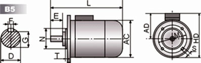 | 機(jī)座號 | 安裝尺寸(mm) | B14 安裝尺寸(mm) | B5 安裝尺寸(mm) | 外形尺寸 (mm) | ||||||||||||||||||||